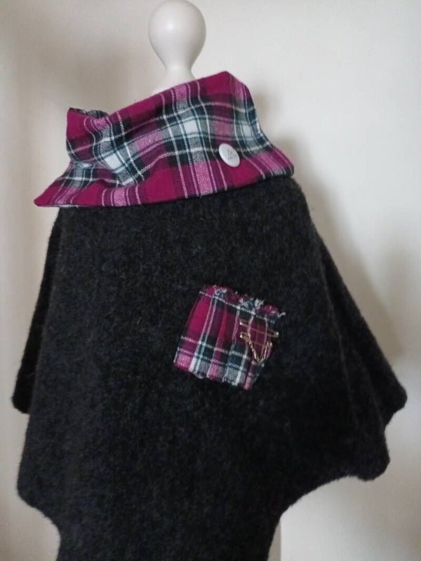 Poncho en laine bouillie, flanelle tartan.